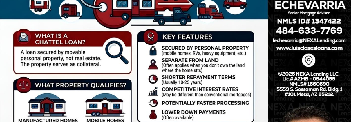 Hi, my name is Luis Echevarria. I’m a Loan Officer offering personalized mortgage solutions, fast customized quotes, great rates and service with integrity. If you’re interested in learning more about the Chattel loan or any other, just let me know and I’ll walk you through your options.
