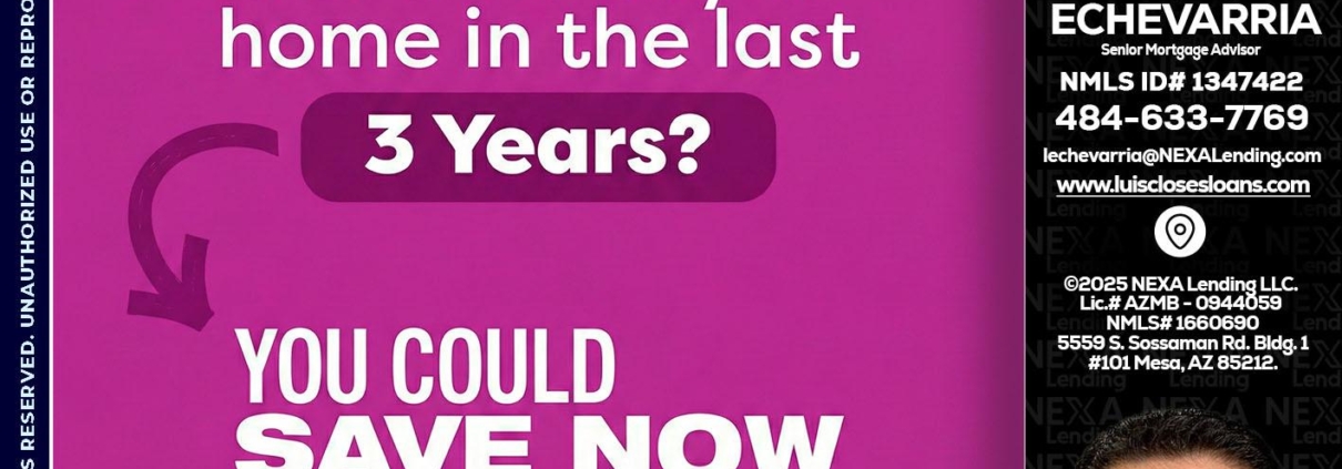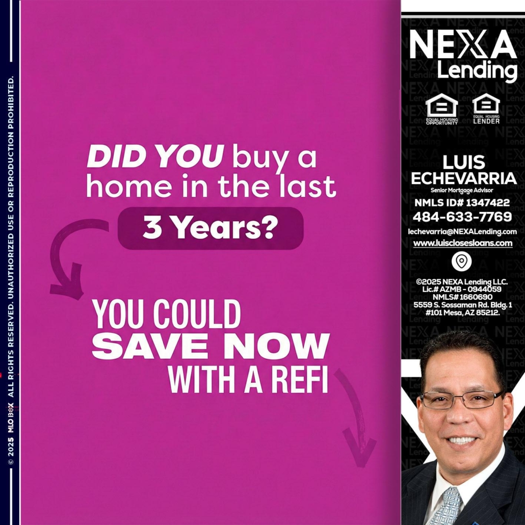 Hi, my name is Luis Echevarria. I’m a Loan Officer with NEXA Lending LLC., offering personalized mortgage solutions, fast customized quotes, great rates and service with integrity.
