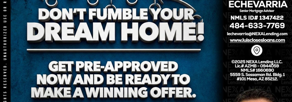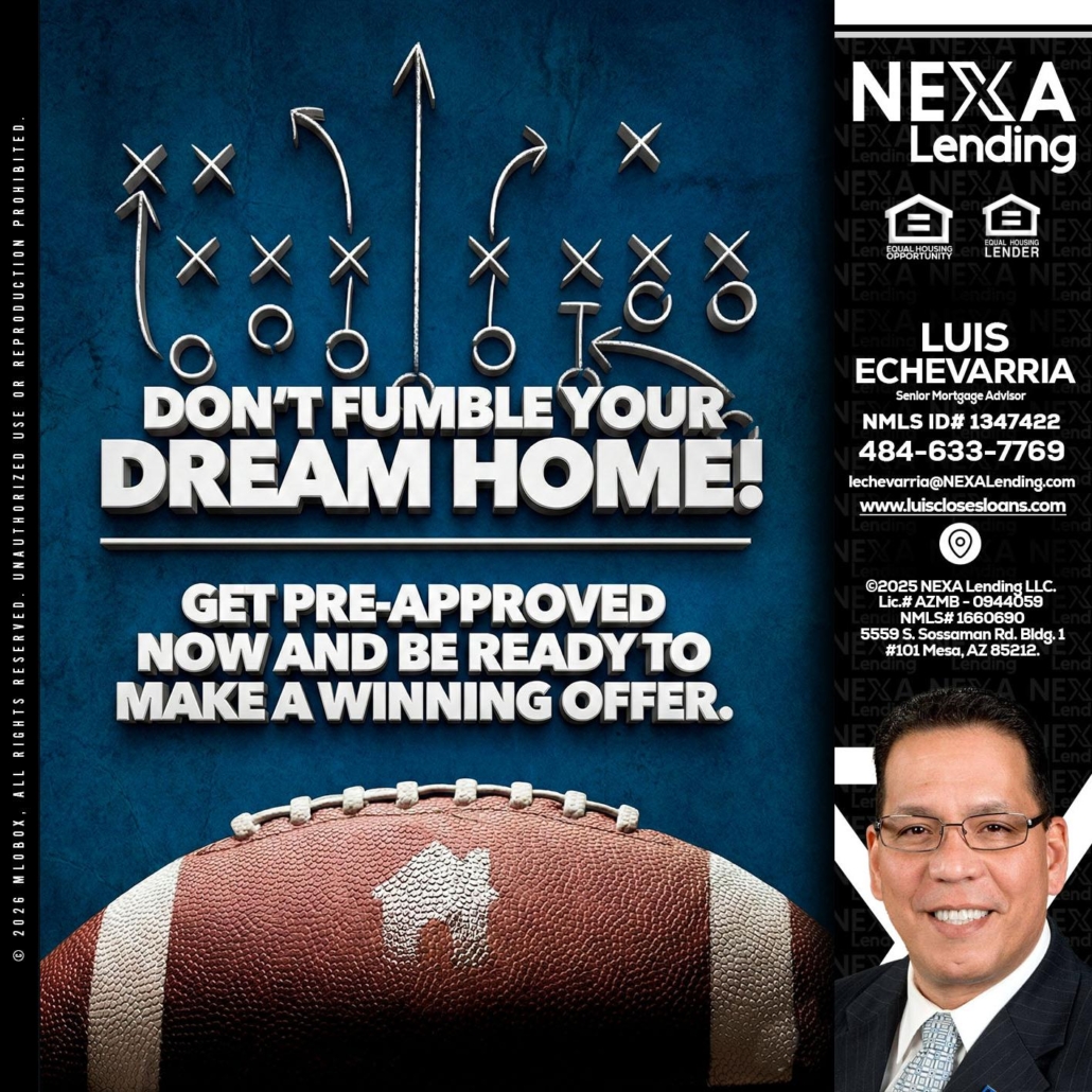 Hi, my name is Luis Echevarria. I’m a Loan Officer with NEXA Lending LLC., offering personalized mortgage solutions, fast customized quotes, great rates and service with integrity.