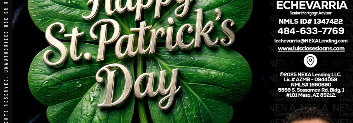 happy st. Patricks day - Luis Echevarria -Broker/Senior Mortgage AdvisorHi, my name is Luis Echevarria. I’m a Loan Officer with NEXA Lending LLC., offering personalized mortgage solutions, fast customized quotes, great rates and service with integrity.