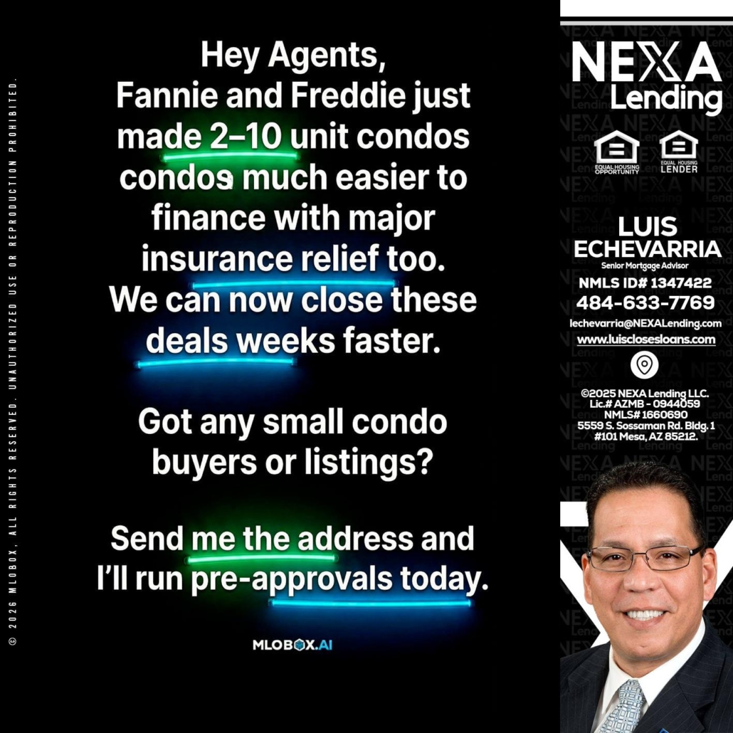Hi, my name is Luis Echevarria. I’m a Loan Officer with NEXA Lending LLC., offering personalized mortgage solutions, fast customized quotes, great rates and service with integrity.