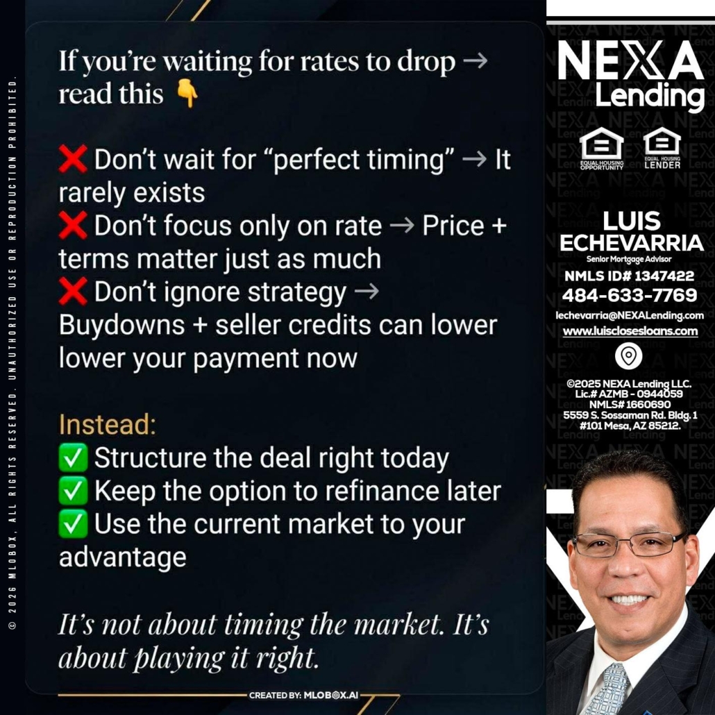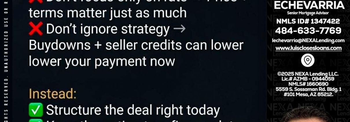 Hi, my name is Luis Echevarria. I’m a Loan Officer with NEXA Lending LLC., offering personalized mortgage solutions, fast customized quotes, great rates and service with integrity.