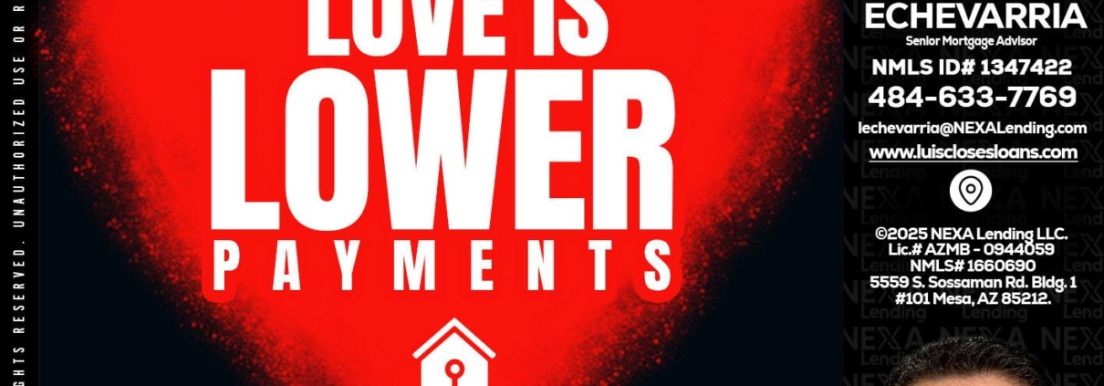 LOVE IS LOWER - Luis Echevarria -Broker/Senior Mortgage AdvisorHi, my name is Luis Echevarria. I’m a Loan Officer with NEXA Lending LLC., offering personalized mortgage solutions, fast customized quotes, great rates and service with integrity.