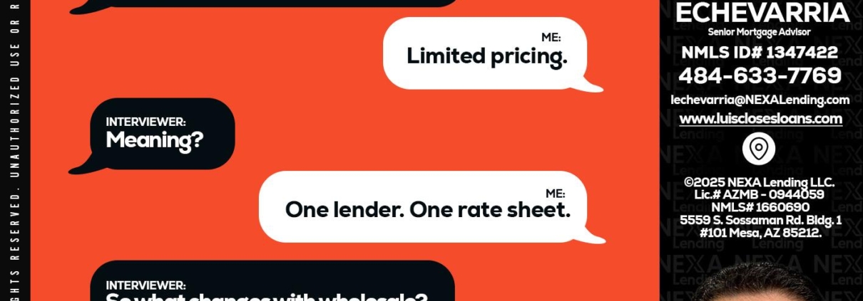 Hi, my name is Luis Echevarria. I’m a Loan Officer with NEXA Lending LLC., offering personalized mortgage solutions, fast customized quotes, great rates and service with integrity.