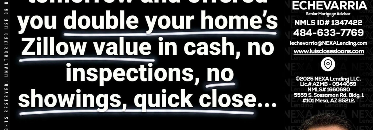 Hi, my name is Luis Echevarria. I’m a Loan Officer with NEXA Lending LLC., offering personalized mortgage solutions, fast customized quotes, great rates and service with integrity.