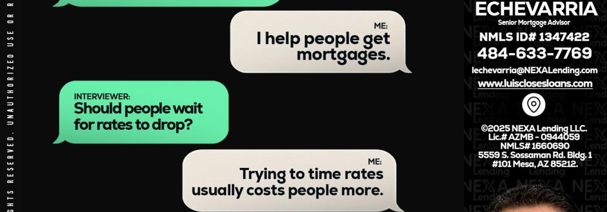 Hi, my name is Luis Echevarria. I’m a Loan Officer with NEXA Lending LLC., offering personalized mortgage solutions, fast customized quotes, great rates and service with integrity.