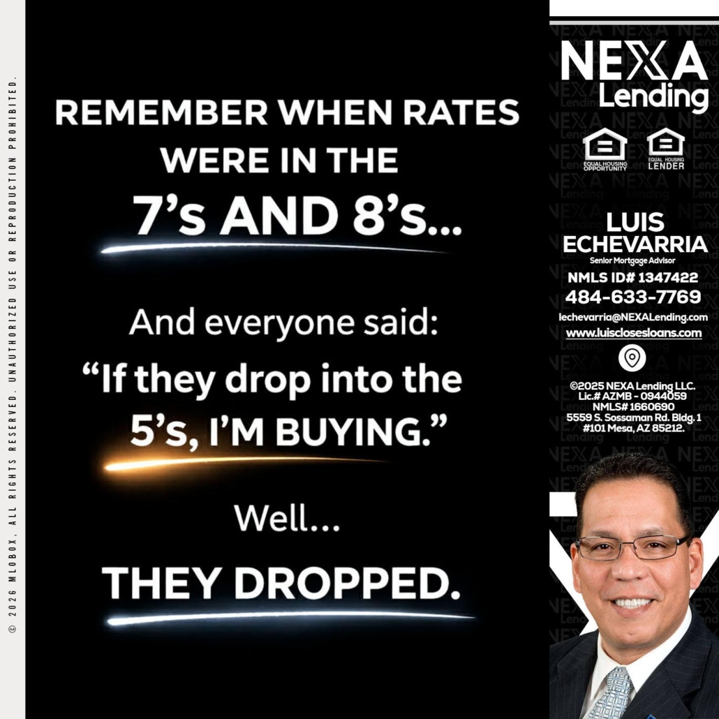 REMEMBER WHEN - Luis Echevarria -Broker/Senior Mortgage AdvisorHi, my name is Luis Echevarria. I’m a Loan Officer with NEXA Lending LLC., offering personalized mortgage solutions, fast customized quotes, great rates and service with integrity.